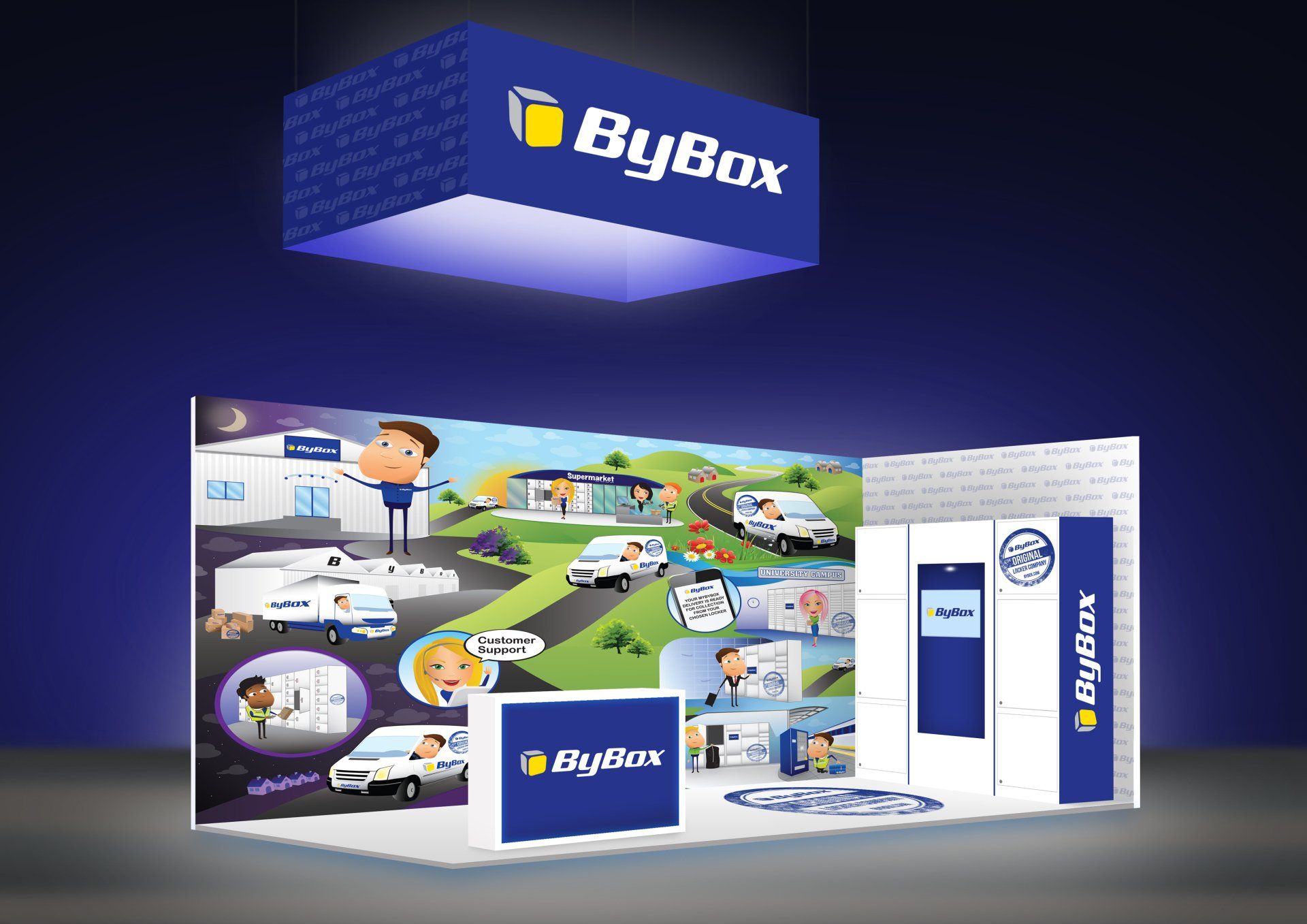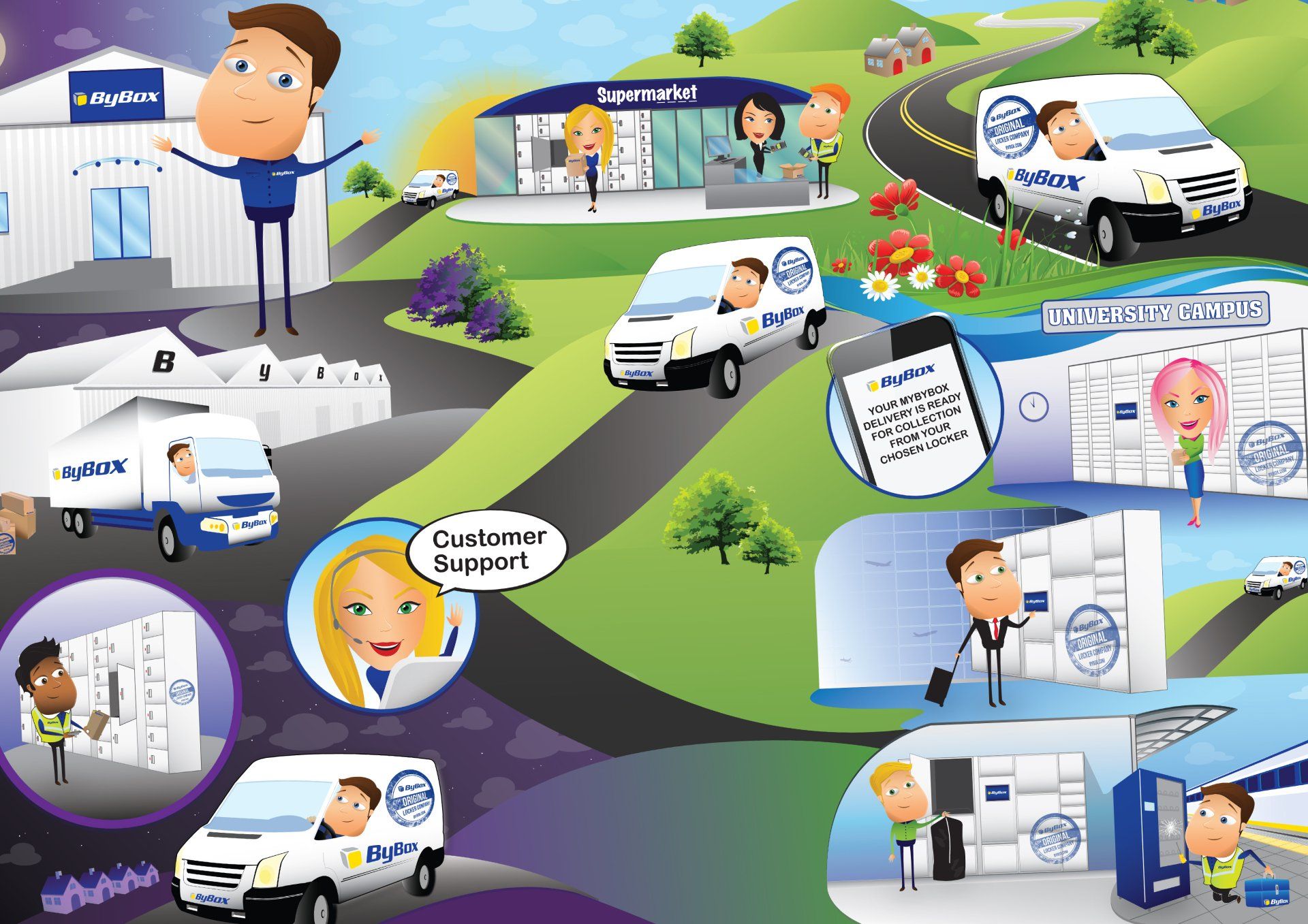I was asked by ByBox to illustrate a mural to help visually explain how their company works.